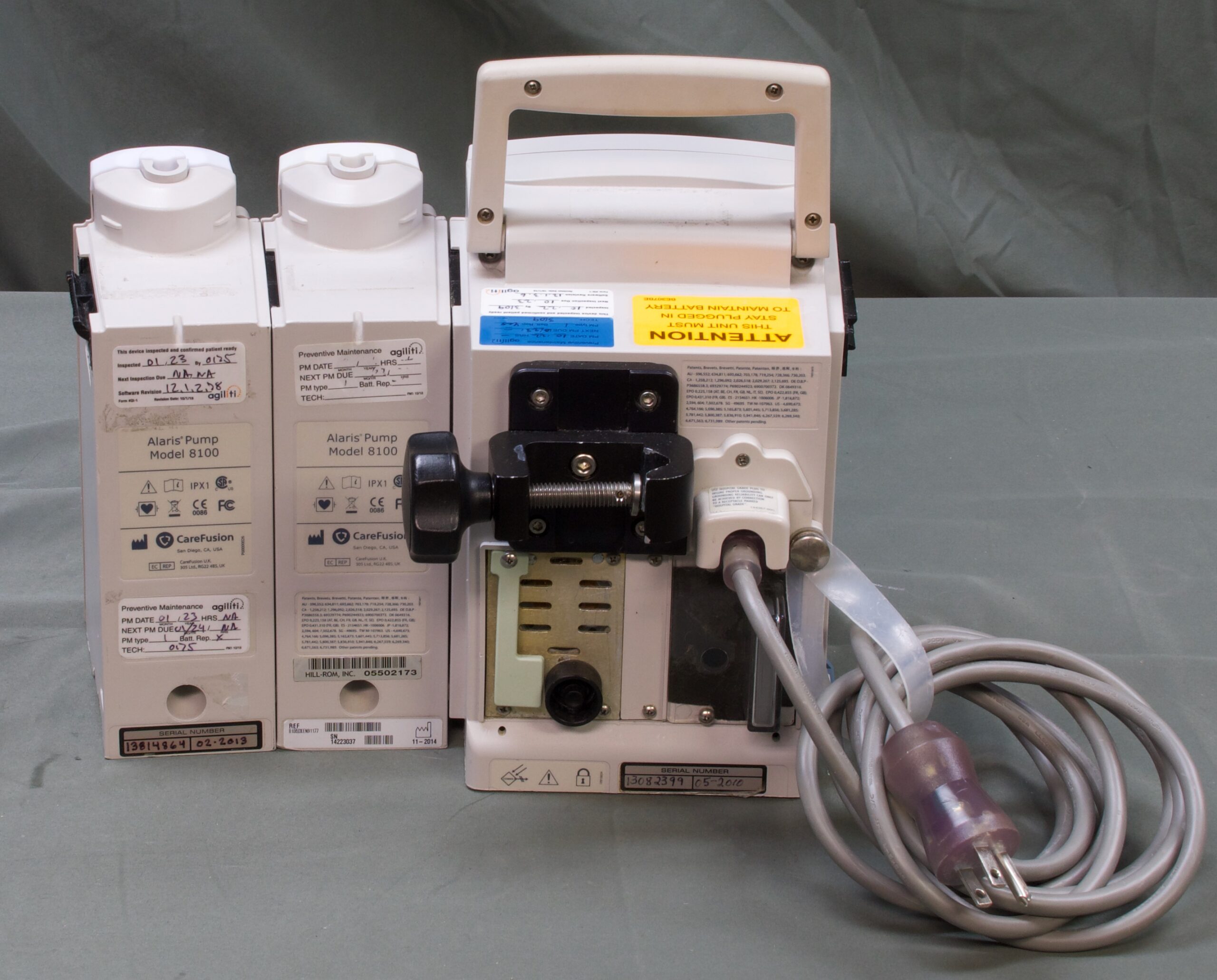 One CareFusion Alaris PC8015 PC Guardrails w/ 2 8100 modules. This item is in good condition overall, with some scuffs/scratches. It is a working pull. It will need PM performaed before being put into service. You will receive one CareFusion Alaris PC8015 PC Guardrails w/ 2 8100 modules (only what is pictured). This item will have a 30 day warranty (NO warranty on the battery). Thanks for looking.
