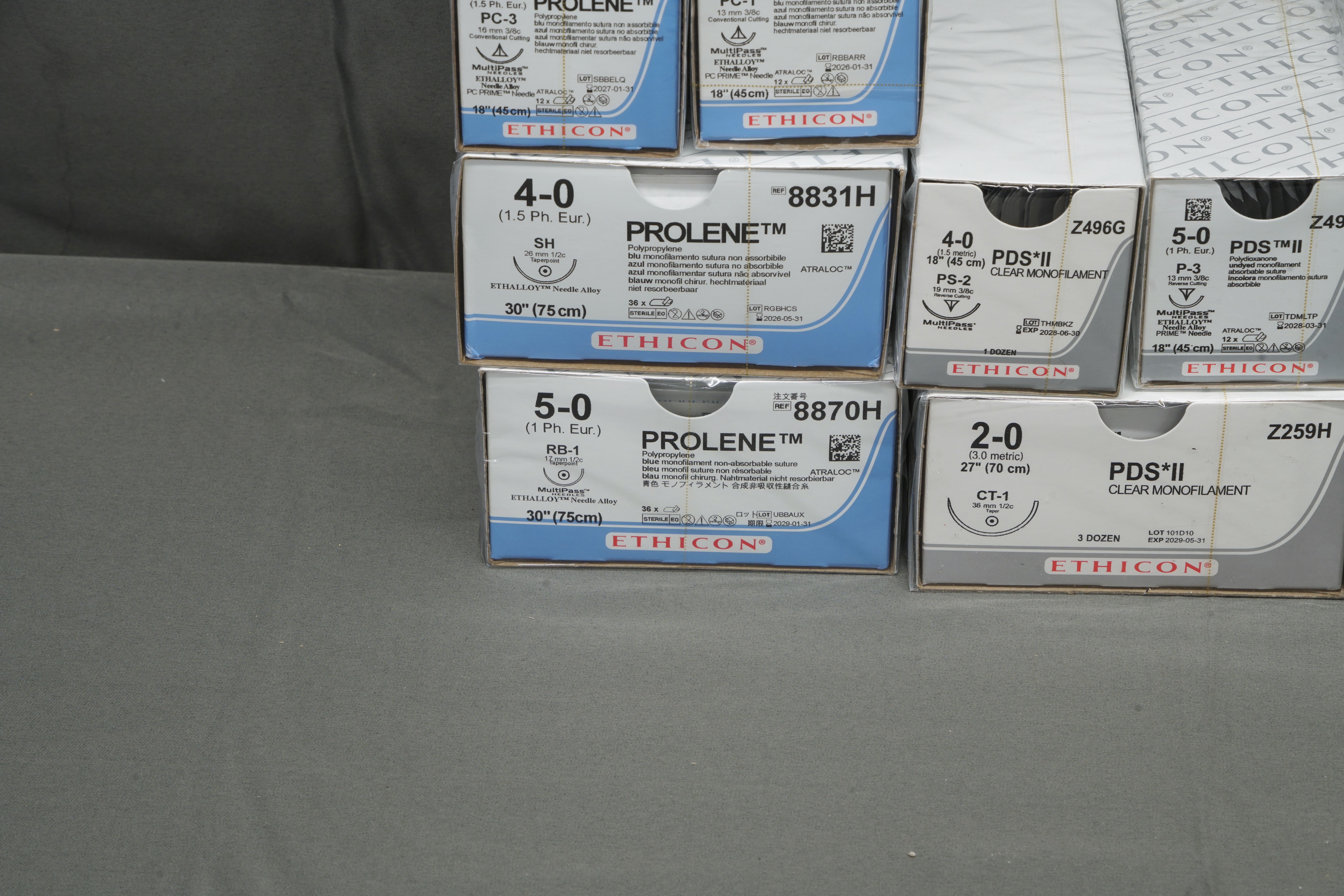 This listing is for 17 boxes of Ethicon sutures. These items are new. The expiration dates range from 1-31-2026 to 6-30-2029. You will receive 17 boxes of Ethicon sutures (only what is pictured). Thanks for looking.
