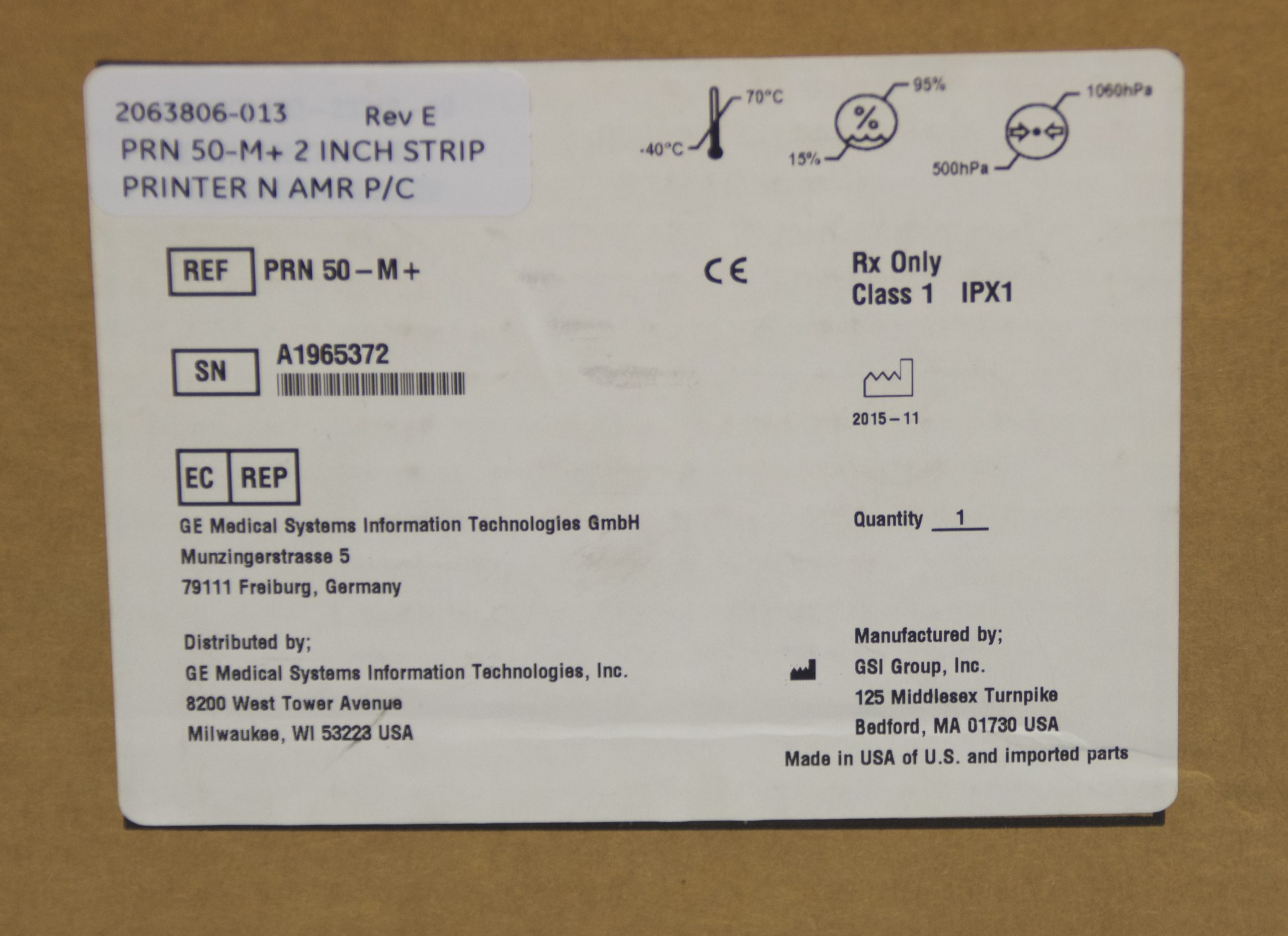 One GE PRN 50-M+ medical printer. This item is in good condition overall, with some scuffs/scratches from use. It powers on, but has not been tested further. You will receive one GE PRN 50-M+ medical printer (only what is pictured). This item will have a 30 day warranty. Thanks for looking.