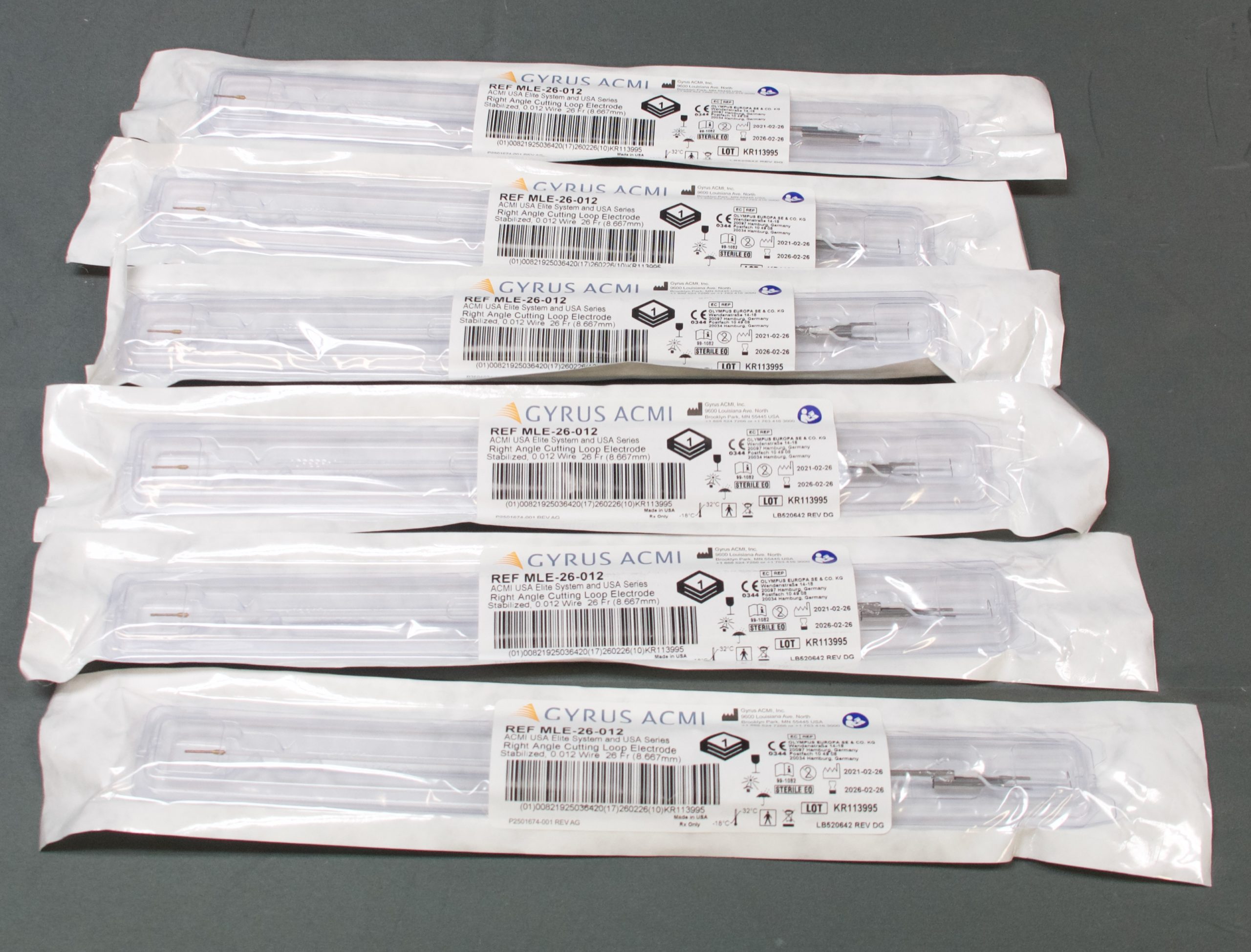 This listing is for 6 Gyrus ACMI MLE-26-012 right angle cutting loop electrode. These items are new. The expiration date is 2-26-2026. You will receive 6 Gyrus ACMI MLE-26-012 right angle cutting loop electrode (only what is pictured). Thanks for looking.