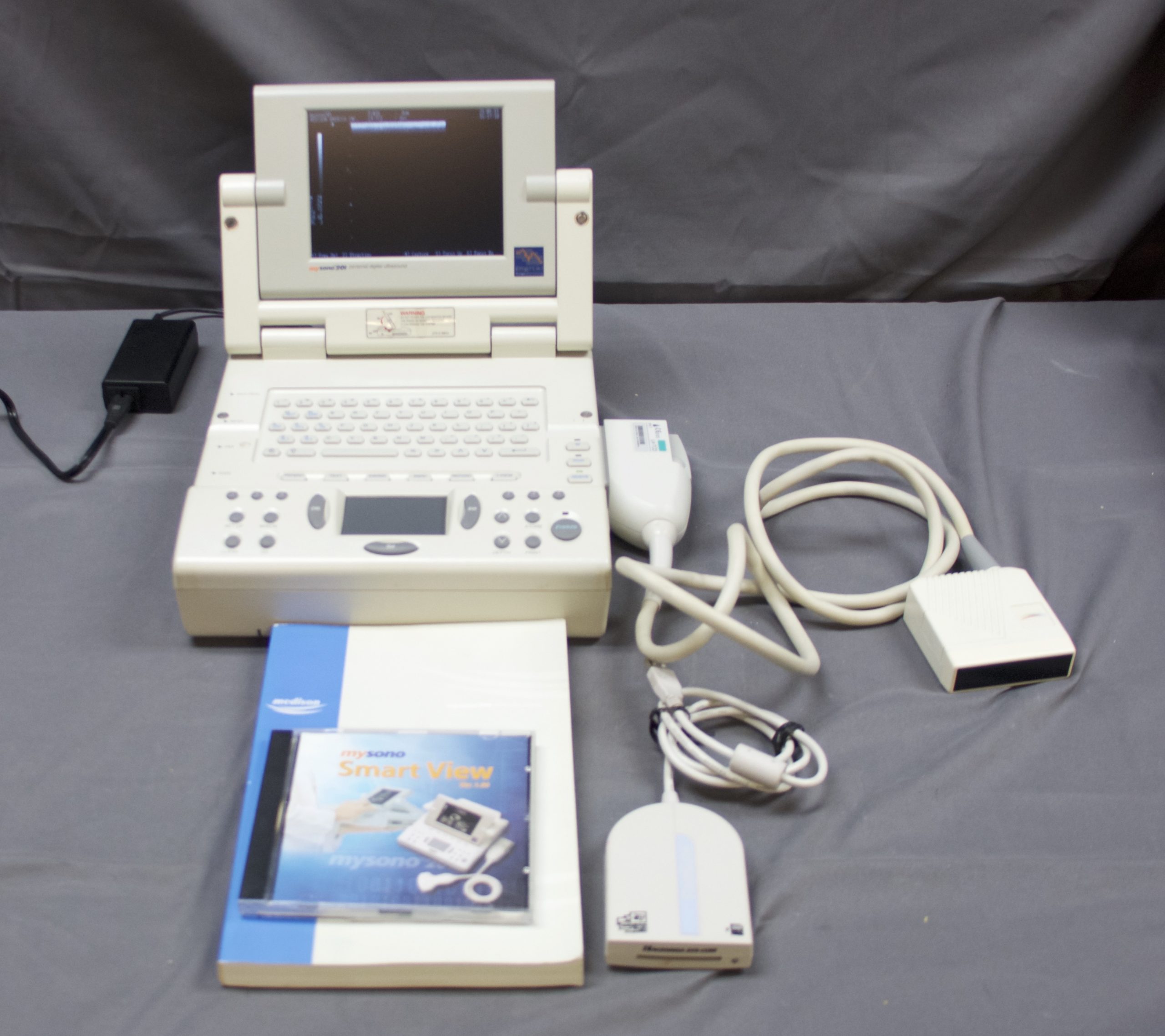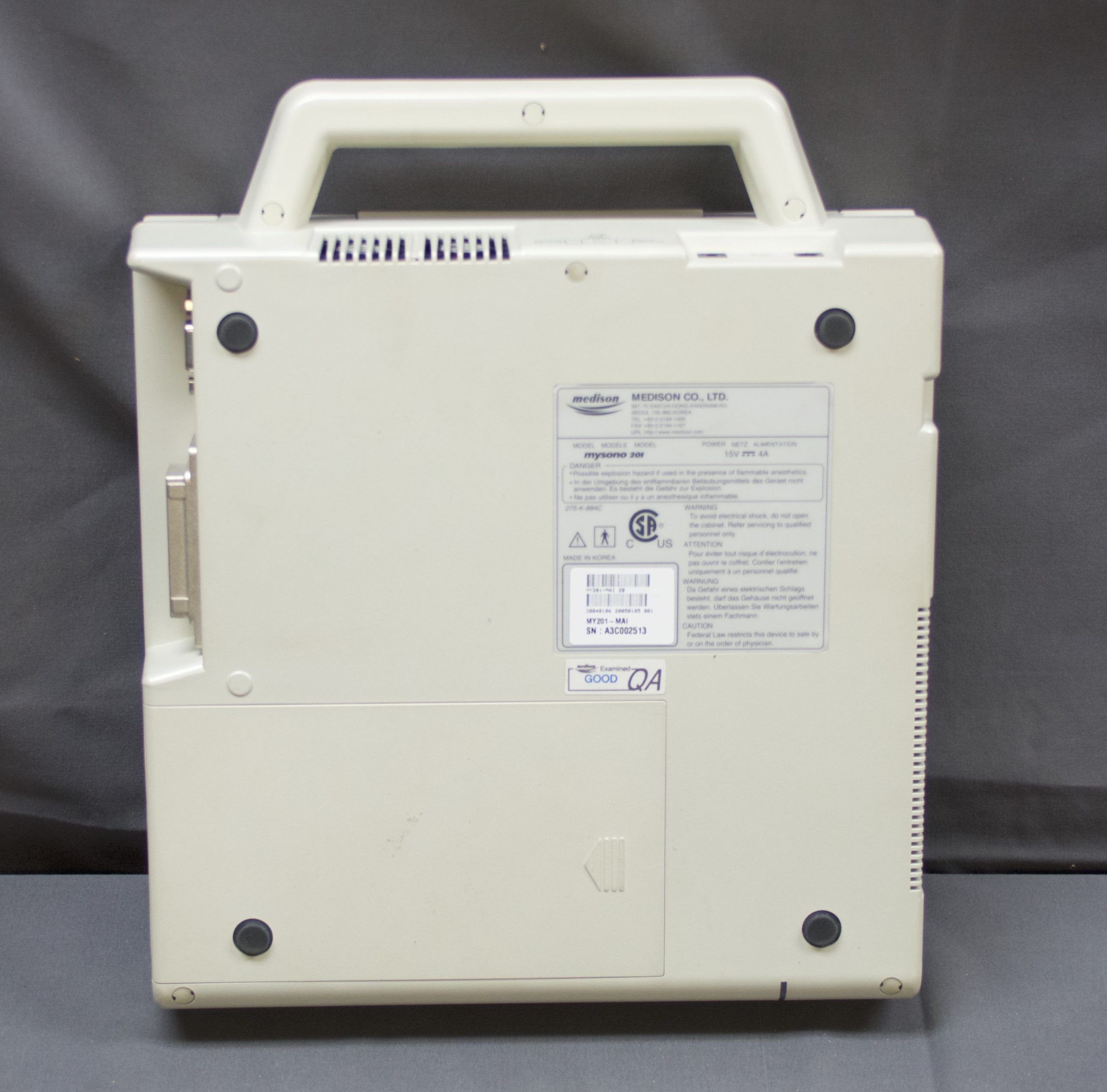 One Medison MySono 201 ultrasound. This item is being sold for parts. It is in good condition. It does power on, but it does not respond to any of the buttons on the keyboard. The power supply is not the original one. There is no battery in this unit. You will receive one Medison MySono 201 ultrasound (only what is pictured). There is no warranty whatsoever on this item. Thanks for looking.