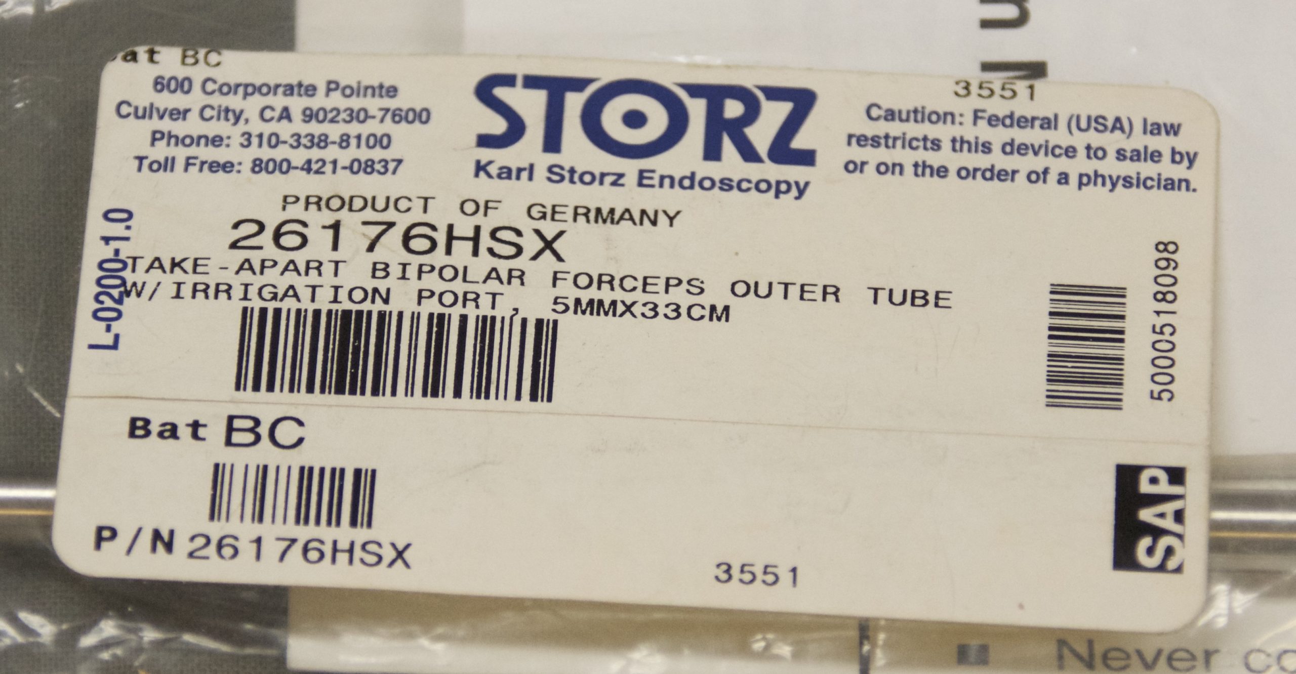 One Storz 26176HSX forceps outer tube. This item is new. You will receive one Storz 26176HSX forceps outer tube (only what is pictured). This item will have a 30 day warranty. Thanks for looking.