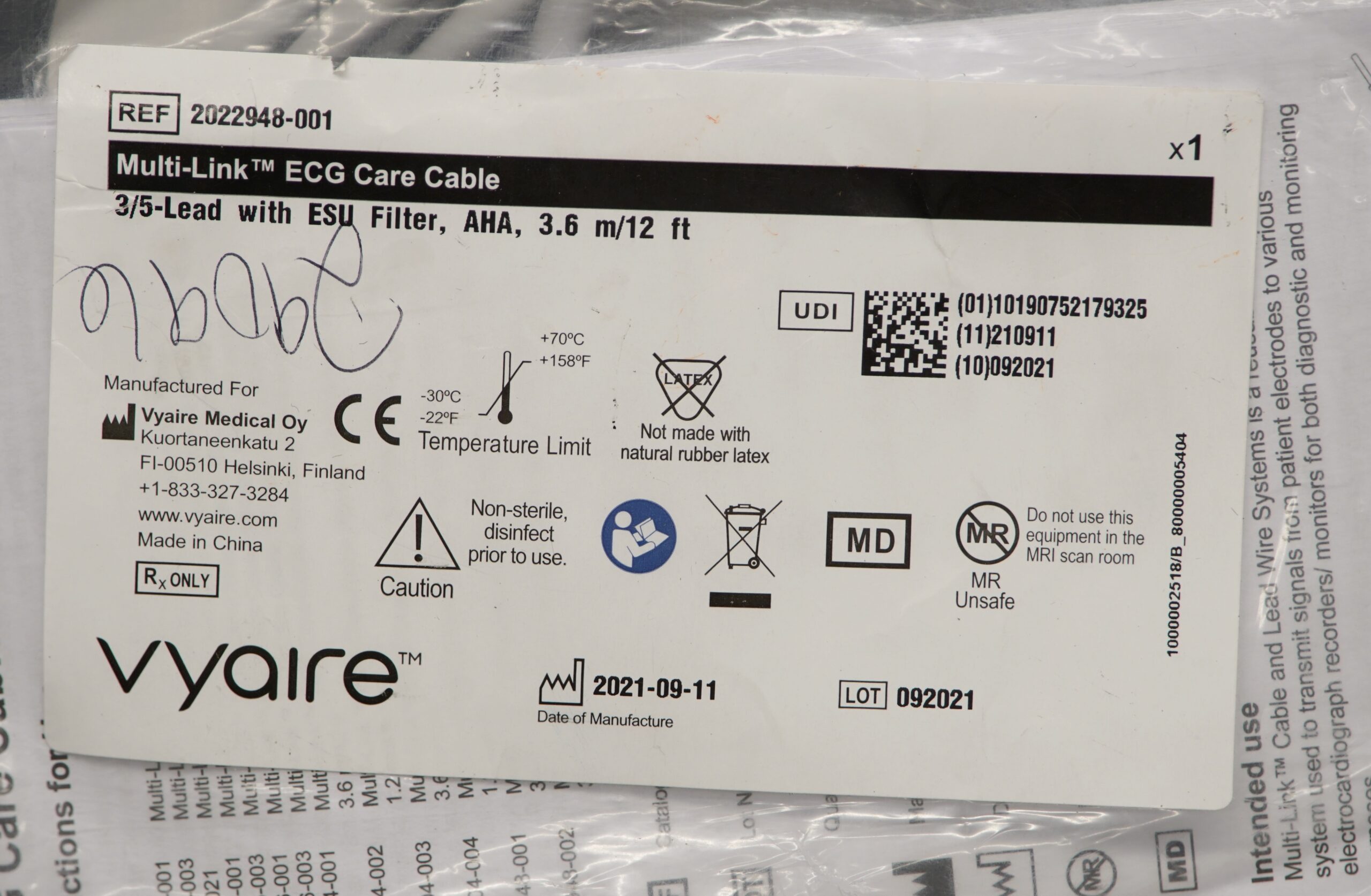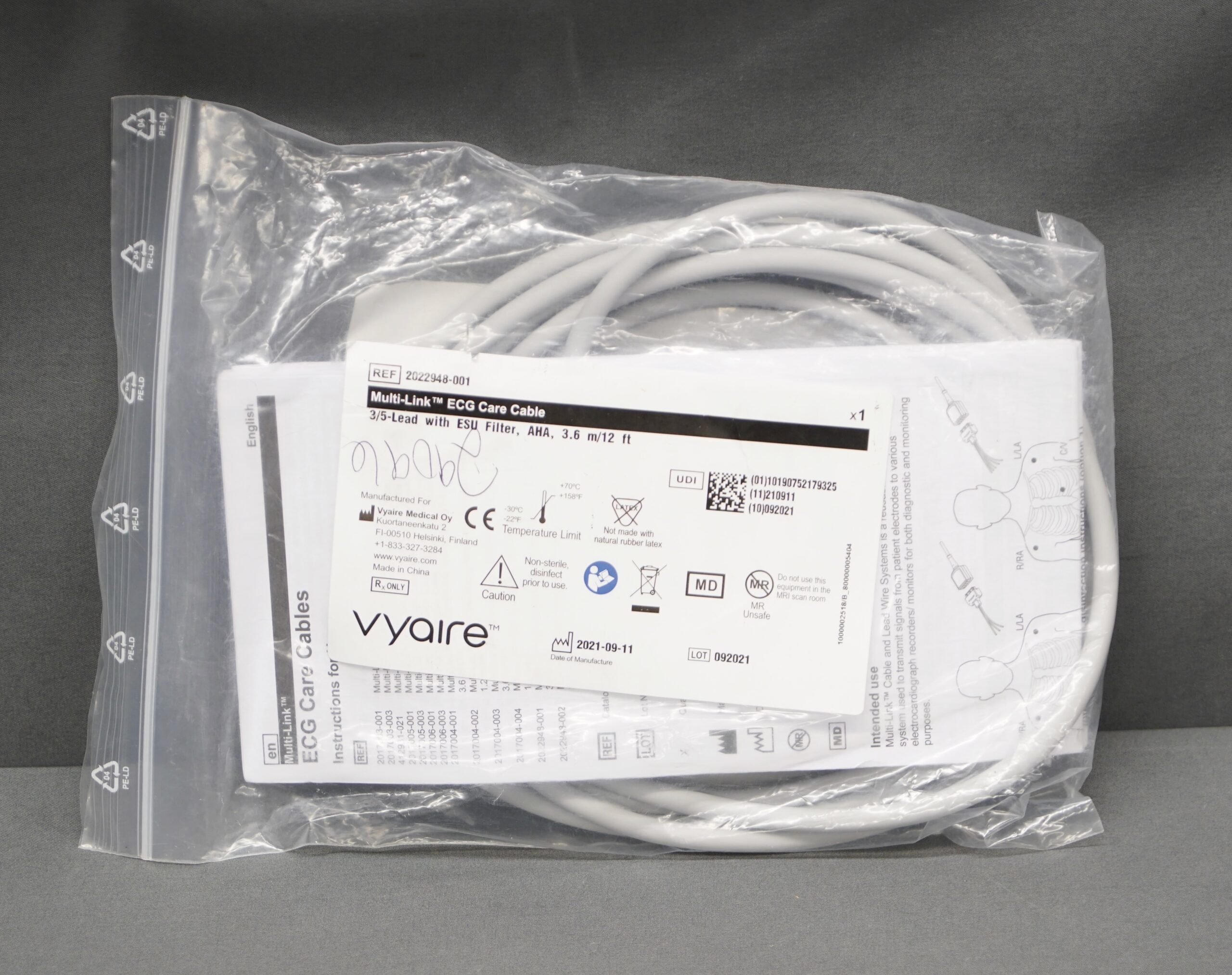 One Vyaire 2022948-001 Multi-Link ECG cable. This item is new. You will receive one Vyaire 2022948-001 Multi-Link ECG cable (only what is pictured). This item will have a 30 day warranty. Thanks for looking.